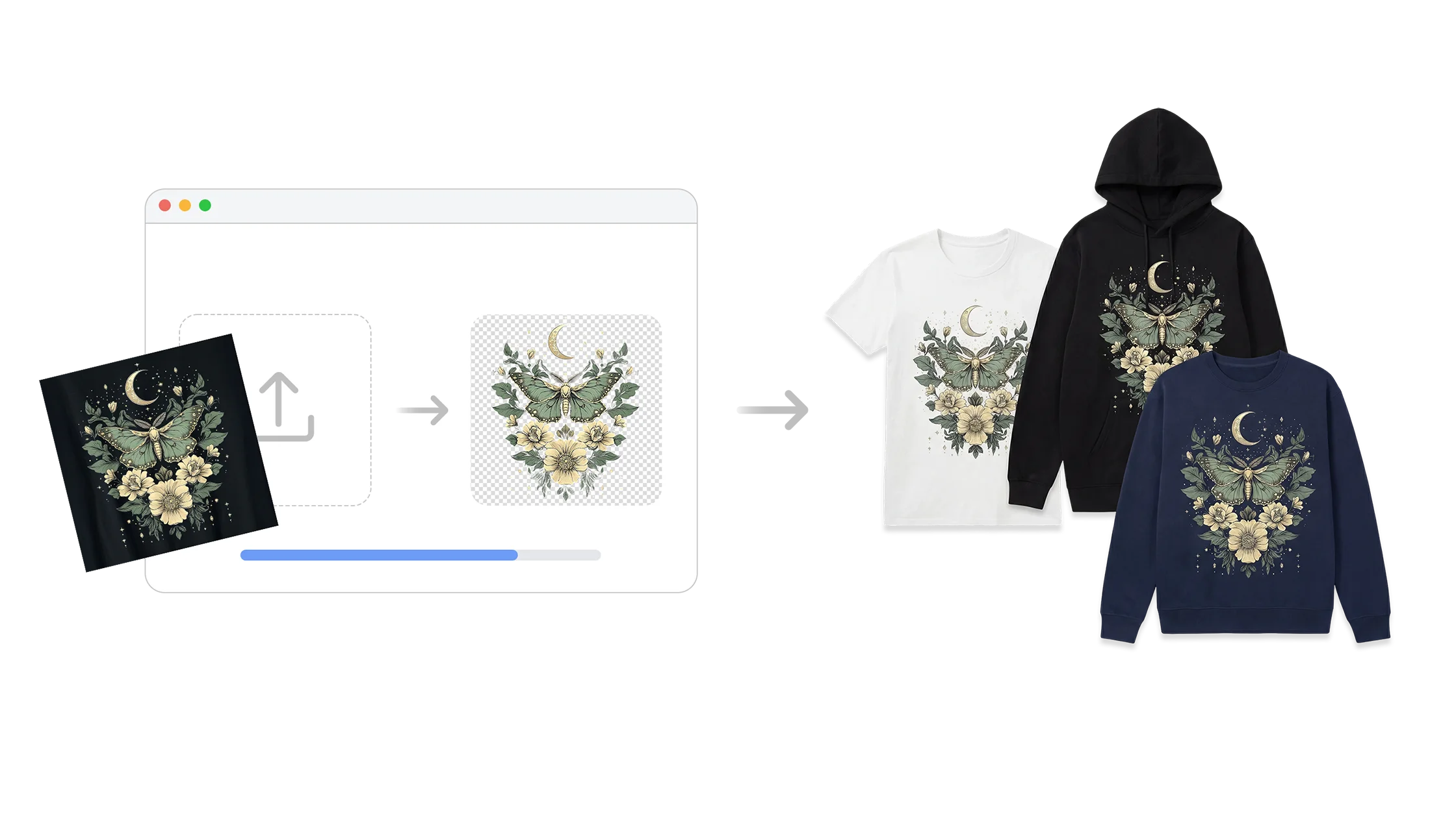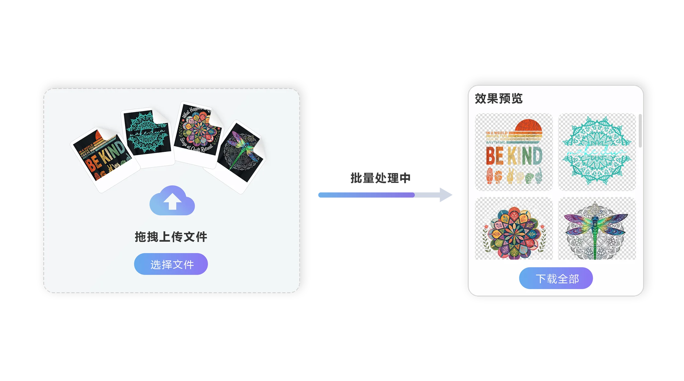 支持多图上传,自动批量处理,适合电商商家、设计公司、印花工厂大批量作业需求。